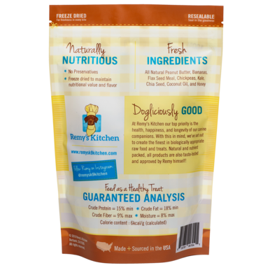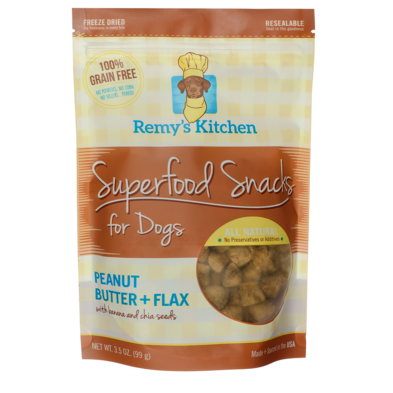 We are so excited to announce the launch of our newest flavor – Peanut Butter+Flax Superfood Snacks. Your pups are going to love these! All Natural Peanut Butter, fresh Bananas, and packed with all the superfoods you love from our other Superfood Snacks! Flax and Chia seeds, Kale, Coconut Oil and touch of raw honey. Nutrients in every bite for your dog!