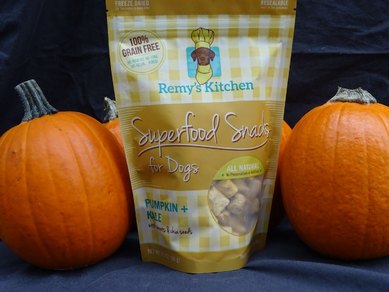 Last Tuesday we started offering our new Superfood Snack, Pumpkin Kale.  The feedback has been really good! Pups everywhere seem to be loving them.  Pumpkin contains Vitamins A (for vision health), C (boots the immune system) .  It’s also loaded with antioxidant beta-carotene and zinc.   We have added Turkey Liver to this one, so it’s not completely veg like our Blueberry Coconut Superfood Snack.  Turkey Liver is a superfood even on its own. Providing an excellent source of Folate, Vitamin B-12, A, Copper, and Riboflavin.  Carrots add Vitamin A and add a touch of sweetness to these treats.  These treats also include the many health benefits of Flax seed, Chia seed, and Coconut Oil.   No Grains, No Fillers.  Ever in our treats.